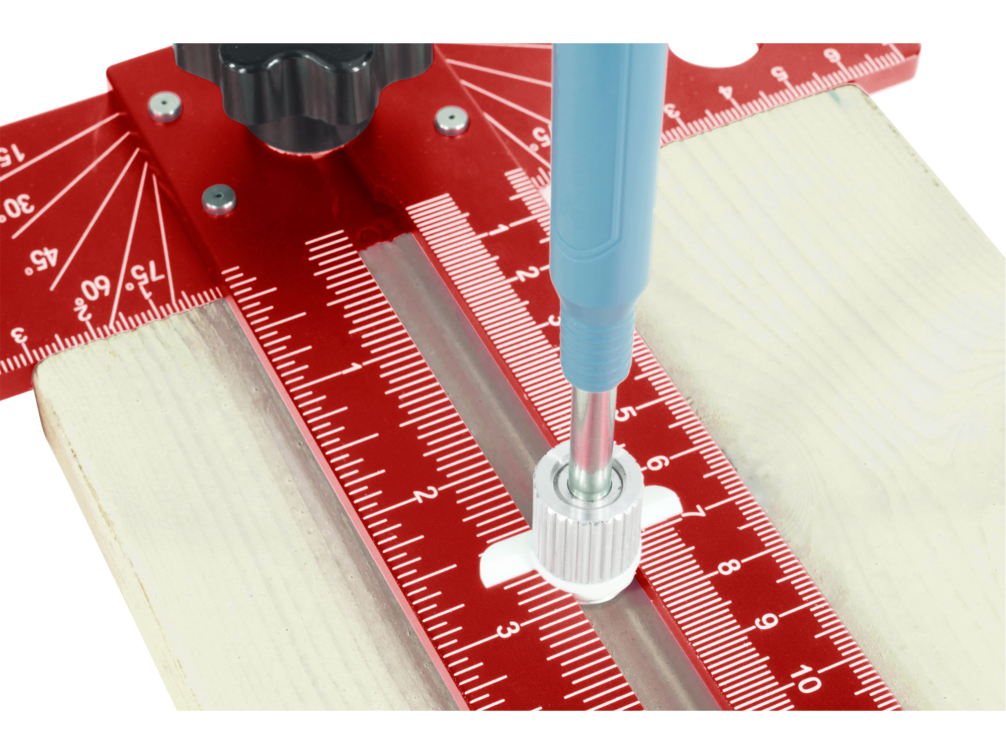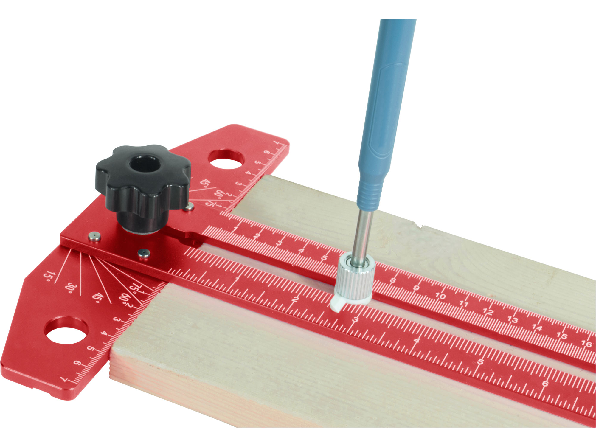 Zusatzparameter: mit voreingestellten Winkeln 15°-30°-45°-60°-75°-90° und verschiebbarem Markierungsschieber
