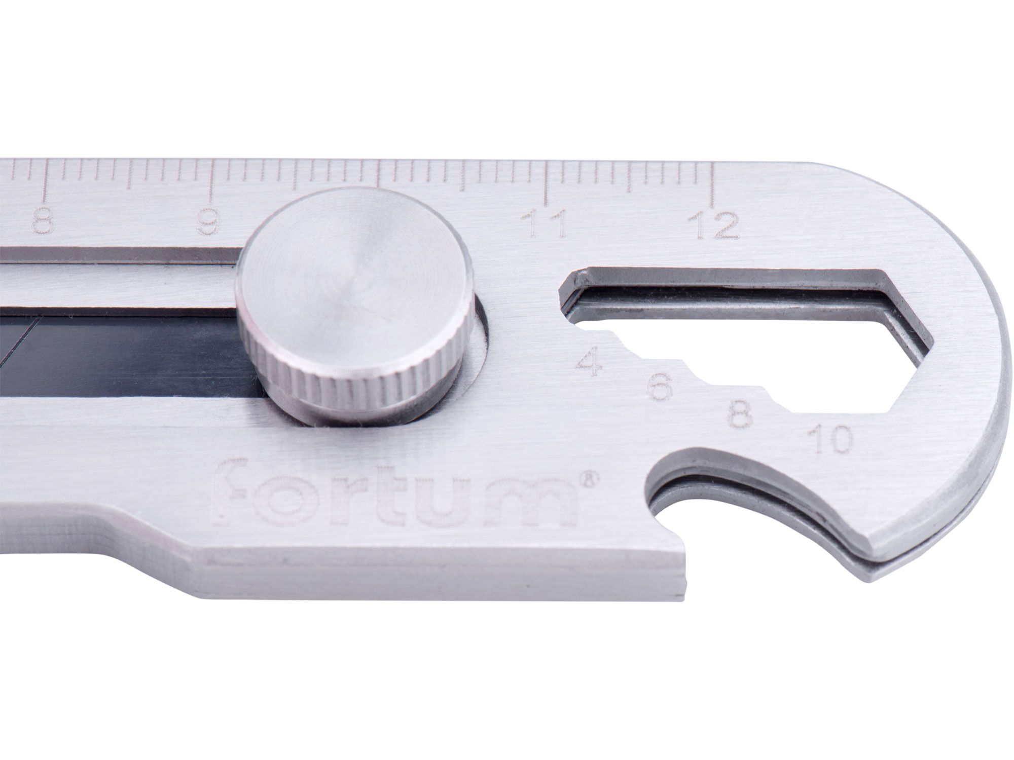 • Der Messerkörper besteht aus rostfreiem Stahl mit einem Feststellrad zur Fixierung der Klinge in der gewählten Position Das Messer verfügt über fünf zusätzliche Funktionen: Lineal, Flaschenöffner, Schlitzschraubendreher, 4-6-8-10 mm Mutternschlüssel, Farbdosenöffner/Stemmeisen